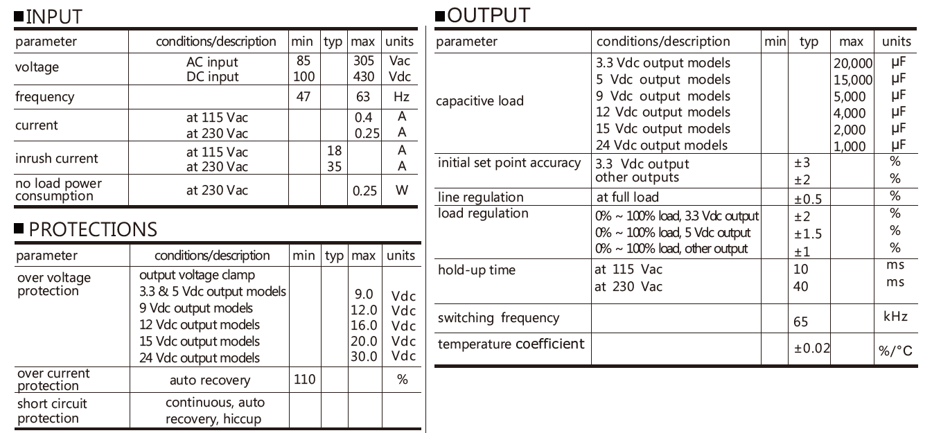 - Input Voltage Range (VAC): 85 ~ 305