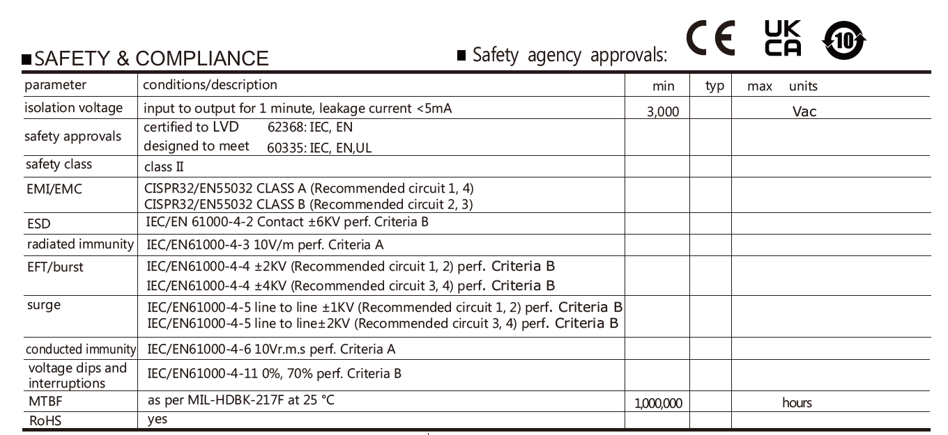 - Safety Standards: UL/EN 62368-1